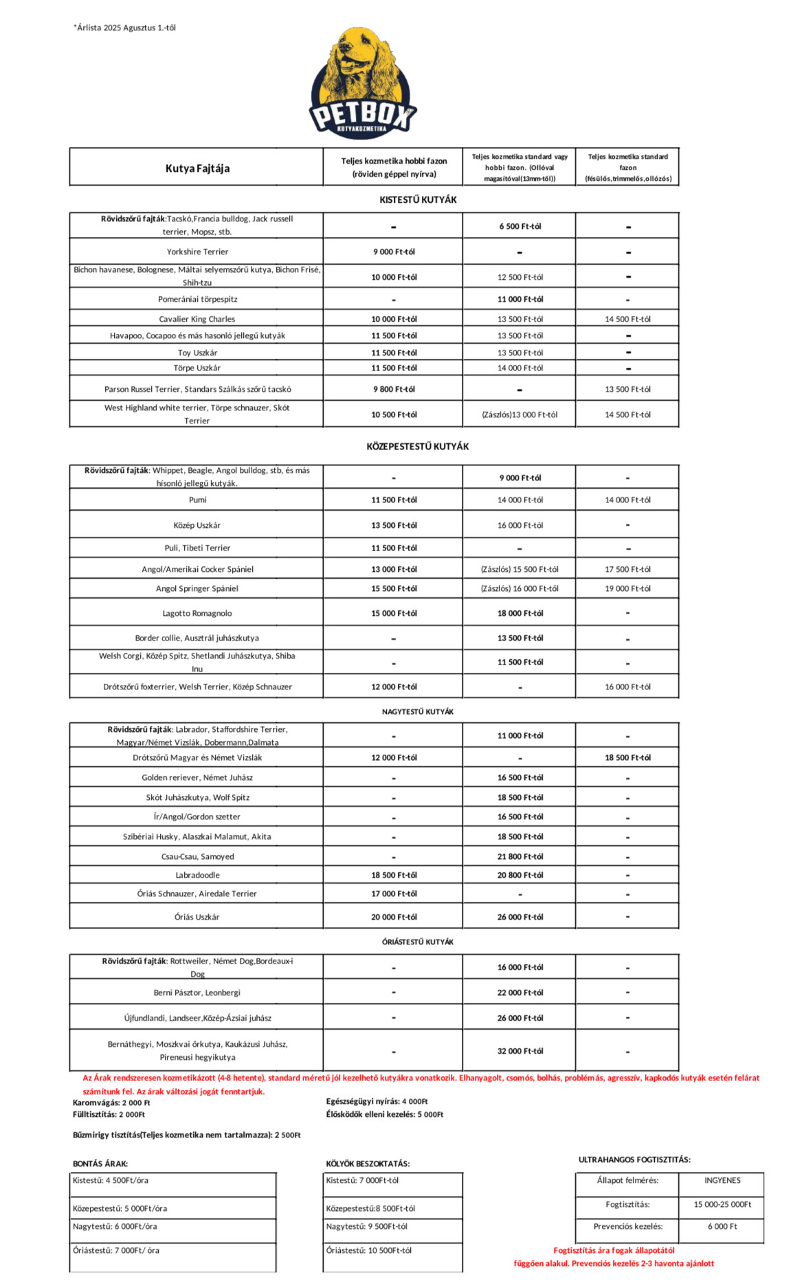 A kistestű Yorkshire Terriertől a Nagytestű Berni Pásztorig mindenkit várunk szeretettel.